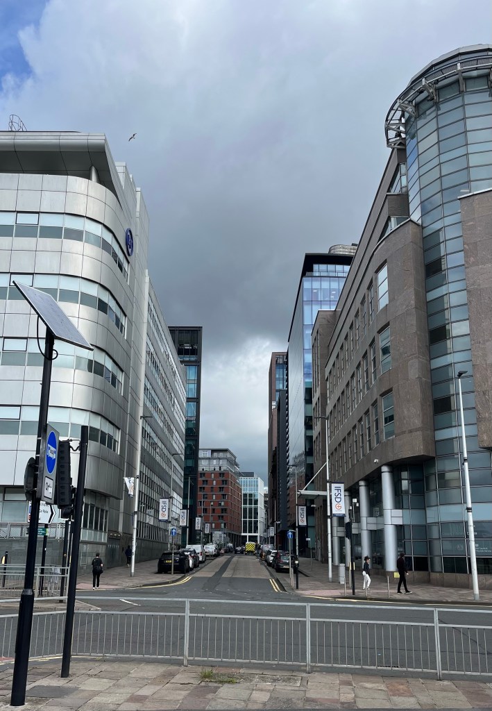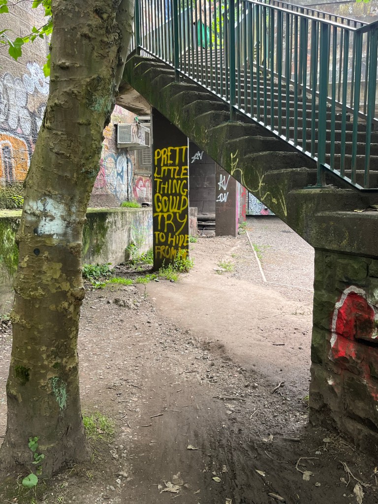 In Glasgow kommt man um Charles Rennie Mackintosh nicht drumrum. Nein, der hat nichts mit Mac / Macintosh zu tun – das geht tatsächlich auf eine Apfelsorte zurück. Ich frage meine Architektenfreundin und die kann sofort abrufen, dass der Typ mit Jugendstil-Design in Verbindung zu bringen ist. Hut ab 👍🏻 …hier in Glasgow hat er auch viele Gebäude entworfen, z.T. mit gesamter Innenausstattung bis zum Stuhl und zur Gardine. Nun ist nicht so einfach, sich das mal vollständig anzugucken …das Wohnhaus ist heute geschlossen, die School of Arts total verhüllt (nach 2 verheerenden Bränden wird hier saniert), die Macintosh Queens Cross – eine Kirche – schon 1896 erbaut – leider nicht offen, aber dann das Teehaus …macht 12 Uhr auf und ich kriege einen Platz, trinke eine Blue Lady (das ist ein Tee !) und guck mich staunend um – gefällt mir wirklich gut. Leider hatten er und seine auch gestaltende Frau wenig davon und wohl oft Geldnot.