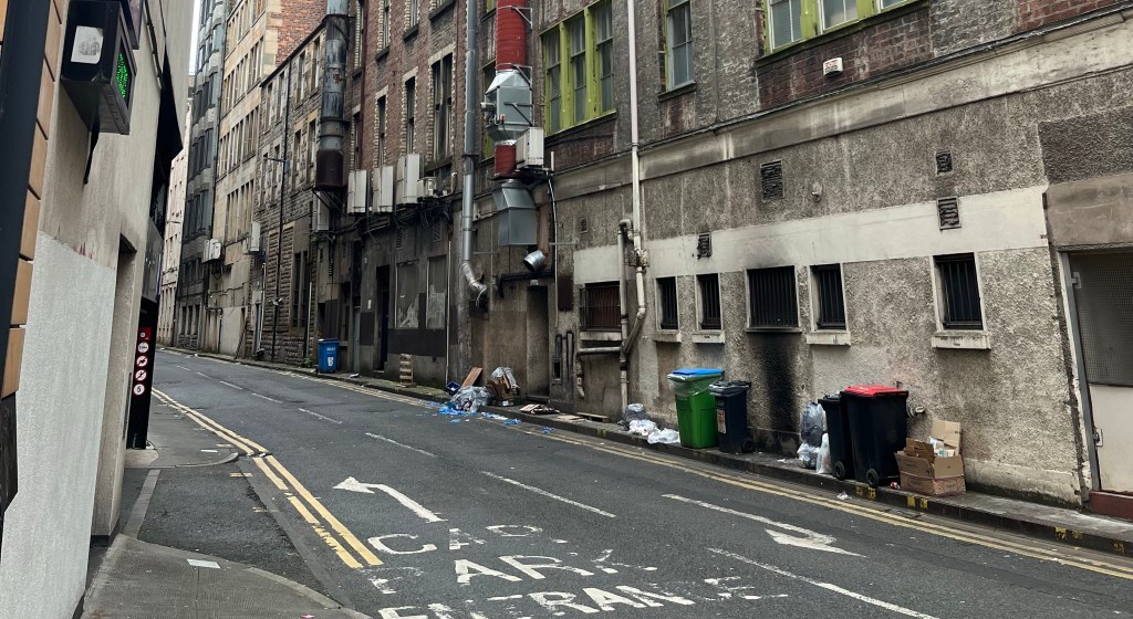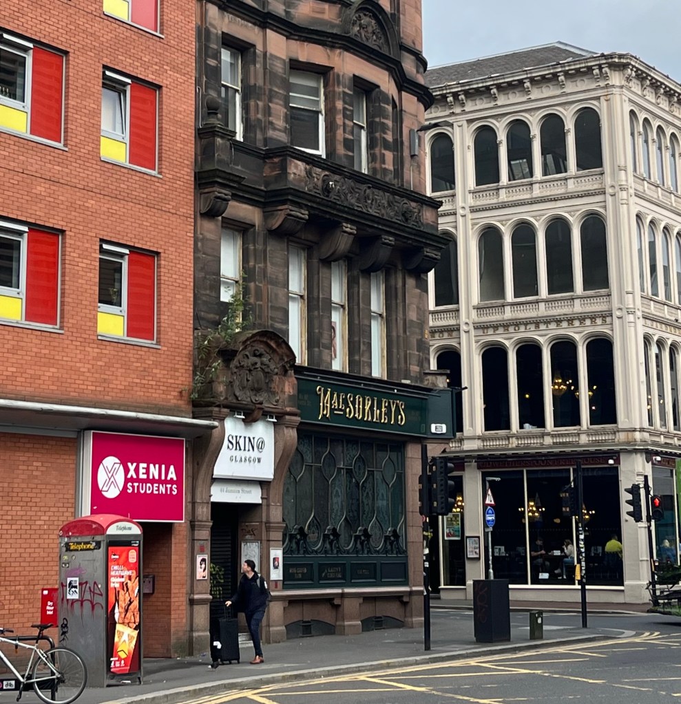 Eins ist schnell klar – Glasgow ist nicht so nett wie Edinburgh. Ich geh zum St Enoch Square – der sieht noch sehr verkatert aus …müde Karusselle und Leute mit Rollkoffern, die einen ersten Kaffee suchen.