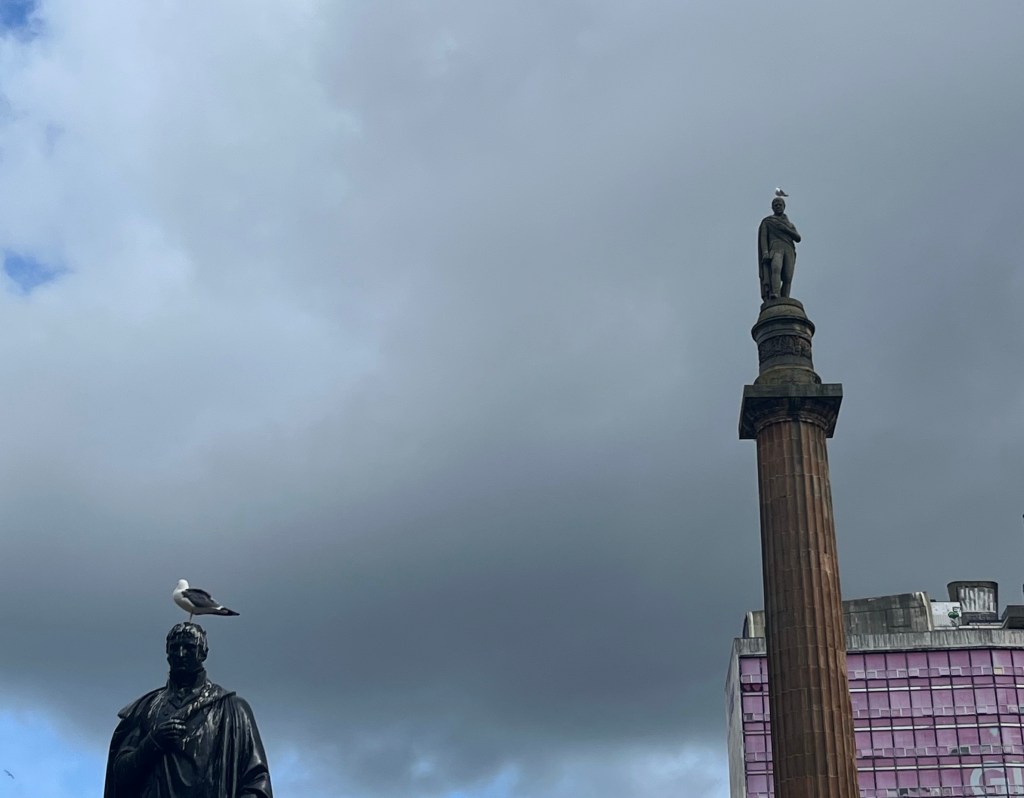 Ich schlendere weiter zum George Square, der aber gerade abgesperrt wird – ich werfe einen Blick auf die vielen versteinerten Helden hier …nicht nur vor dem Tod sind sie alle gleich, vor den Möwen auch.