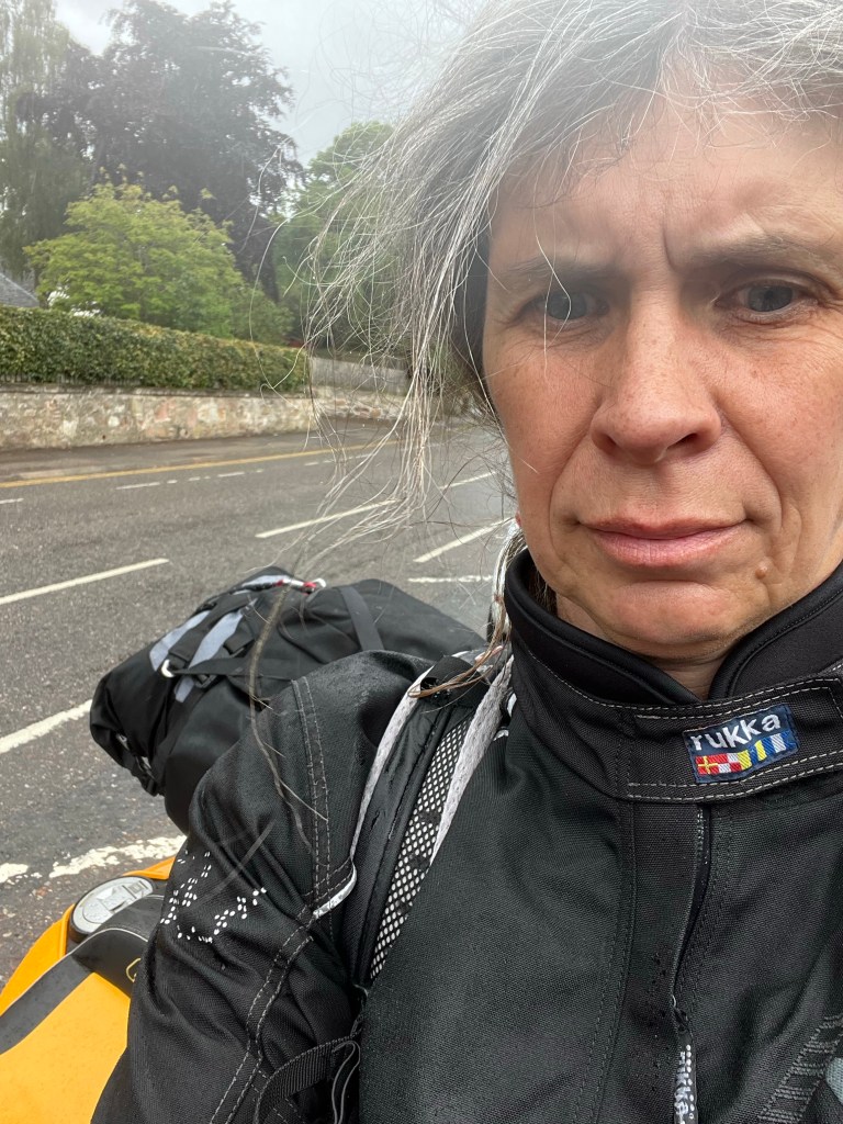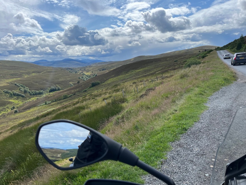 Bis etwa Stirling fahre ich Fernstraße durch schöne Orte, dann wechsele ich auf die Autobahn bis Perth (sonst wird die Zeit knapp) und dann auf die alte Militärstrasse in den NP und später die Highlands. Es wird kühler und bergiger und durch den sich eng windenden Ort Blairgowrie and Rattrey wird es spannend, aber geht auch (immer, wenn es bergig wird, denke ich „was mach ich hier, ich kann doch gar nicht Motorrad fahren“, aber nu bin ich hier und kann hier ja nicht einfach aufhören). Ich mach nach dem Ort kurz Pause, fahr dann weiter zu des Teufels Ellbogen 😉 und irgendwann macht es Spaß.