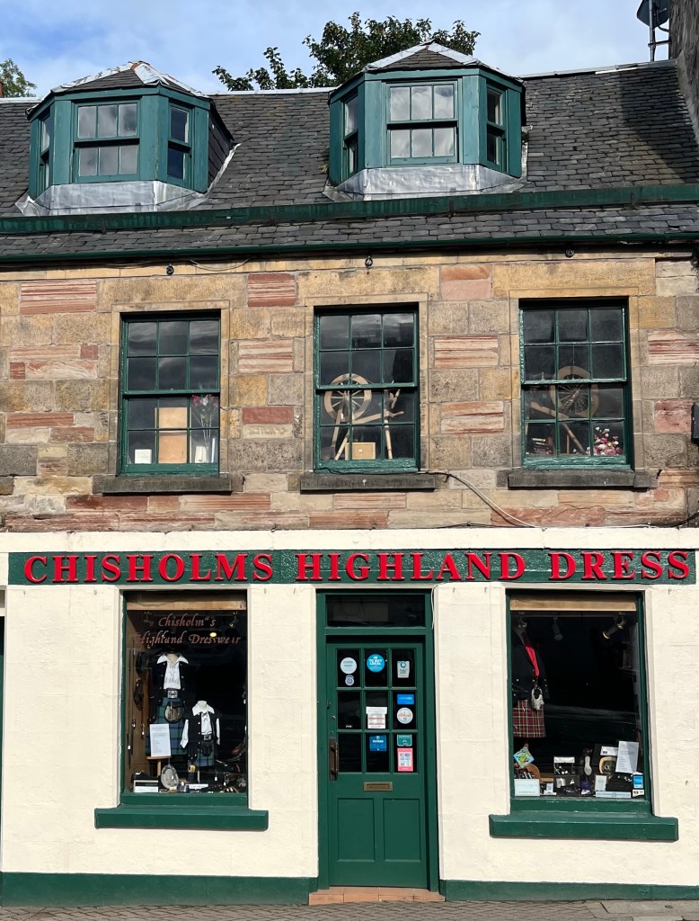 Solche Läden / Kiltmaker beziehen sich hier auch oft auf Jamie Fraser, DEN Highländer.