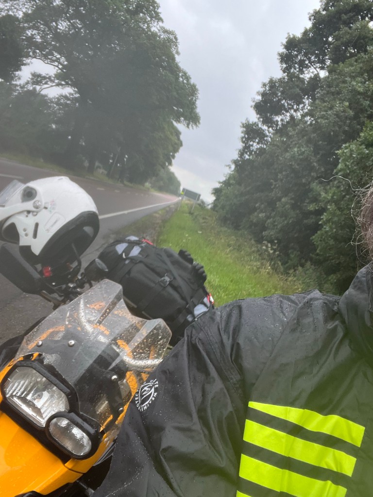 Wenig später fängt es an zu regnen und ich mach nicht den Fehler von gestern, sondern halte und mach mich regenfest, was sich als gut erweist.