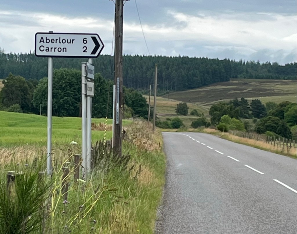 Nach Forres biege ich ins Land rein ab und bin phasenweise ganz allein auf schönen verschlungenen Single Tracks und dem Malt Whisky Trail. An einer sehr unübersichtlichen engen Stelle schießt ein Auto um die Ecke – das war knapp. An sich fahren hier alle sehr vorsichtig.